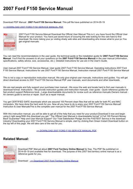 JQA - Reading Online 2007 Ford F150 Service Manual iBooks BookBoon
